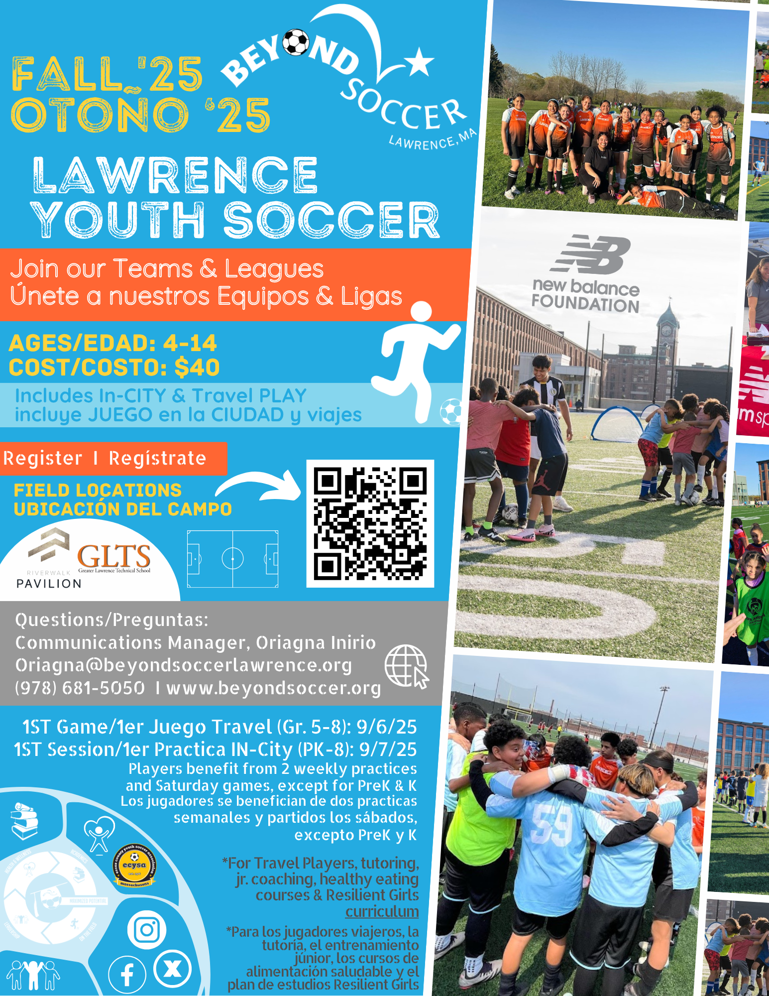 Currently, Lawrence children ages 4–14 (PreK–8th grade) can join Lawrence Youth Soccer.