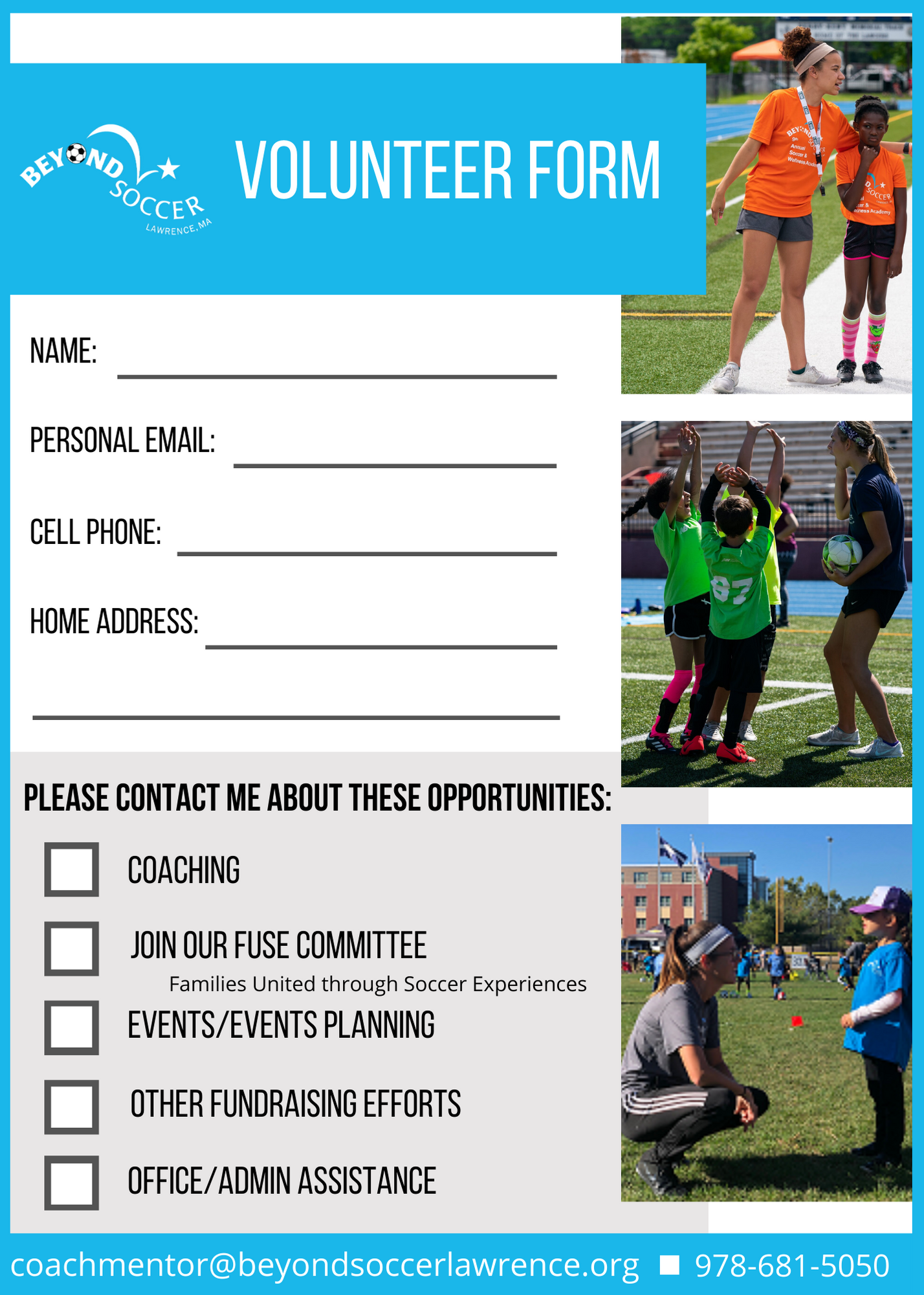 Beyond Soccer relies heavily on volunteers to keep our year-round programs high quality and to be able to continue reaching & supporting our participant base of more than 1,000 Lawrence youth annually.