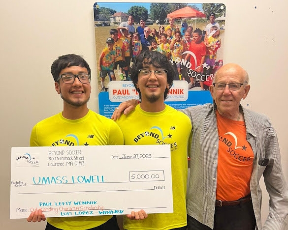 La dedicación y “carácter” de Paul Wennik’s nos llevó a nuestra primera beca anual, la cual fue otorgada a Luiz Lopez en Junio. La Paul Wennik Outstanding Character Scholarship, significó la entrega de $5,000 para costos educativos en UMass Lowell. Para Luiz, esta beca sirve para completar el dinero que su familia estaba tratando de conseguir y fue una sorpresa total para él! Si recolectamos $100,000 para Junio del 2024, la Cummings Foundation contribuirá con $50,000, lo que quiere decir que este programa de beca existirá por un largo tiempo y será distribuida a más estudiantes de escuela secundaria como Luiz.