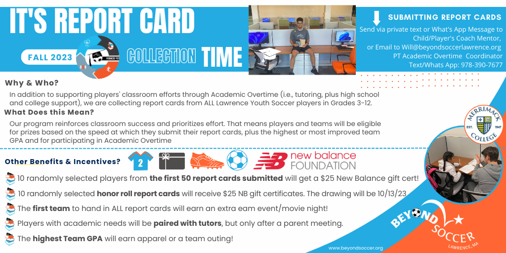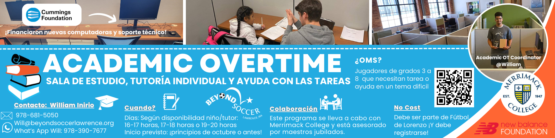 Si eres actualmente un jugador del Lawrence Youth Soccer este Otoño y necesitas asistencia con tus clases, haz click AQUI o más abajo. El Programa de Academic Overtime de Otoño, empezó en Octubre!