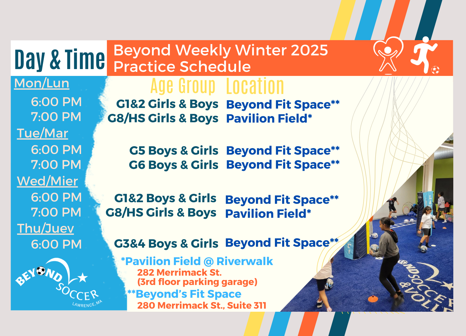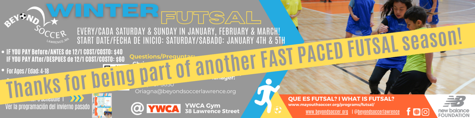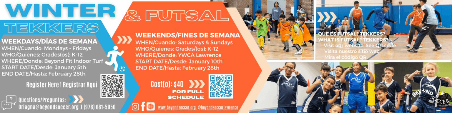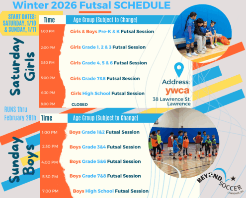 Beyond Soccer proudly partners with the Essex County Youth Futsal League (ECYFL) and the Lawrence YWCA, expanding access to quality indoor competition and connecting Lawrence youth with peers from surrounding communities. These collaborations help break down barriers, build confidence, and keep kids playing through every season.