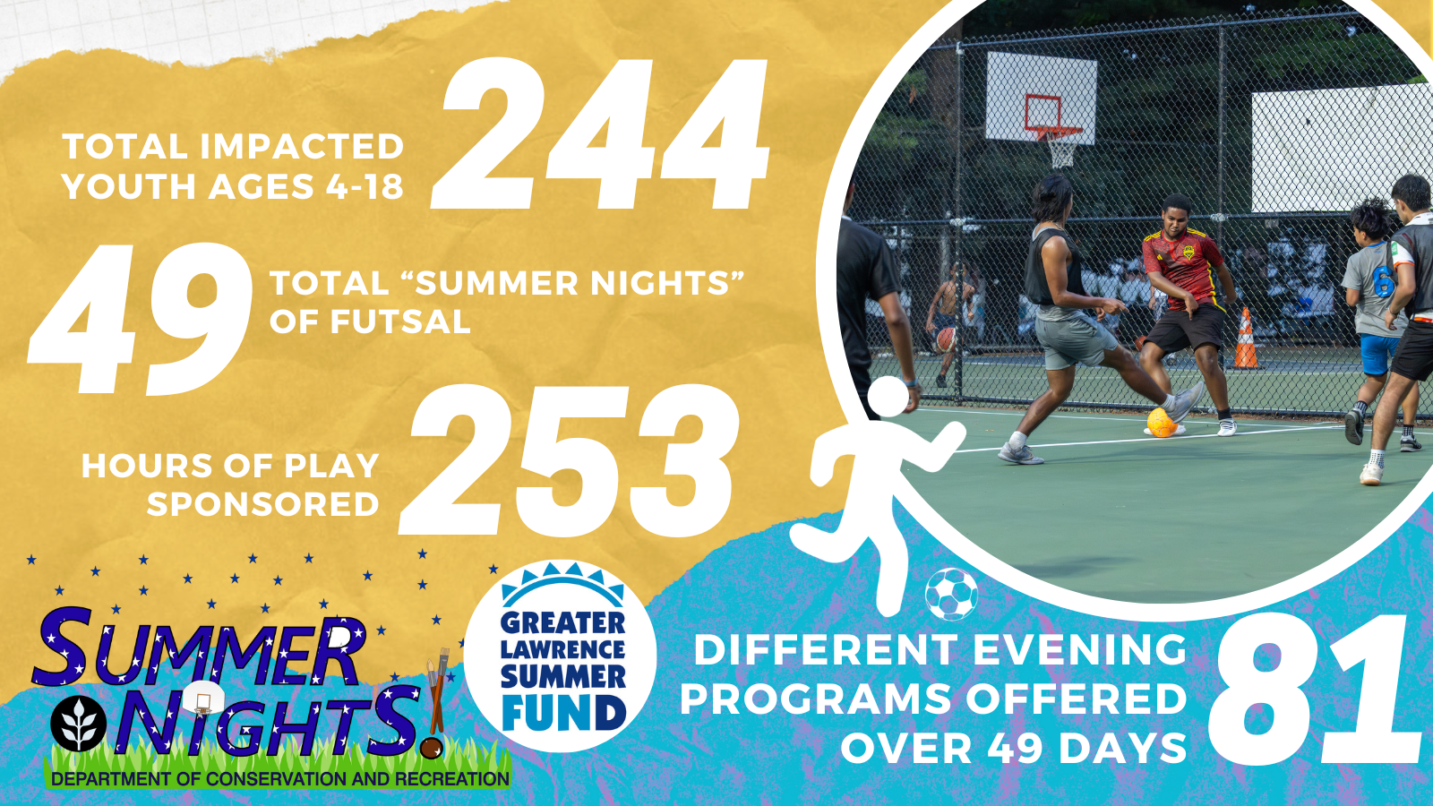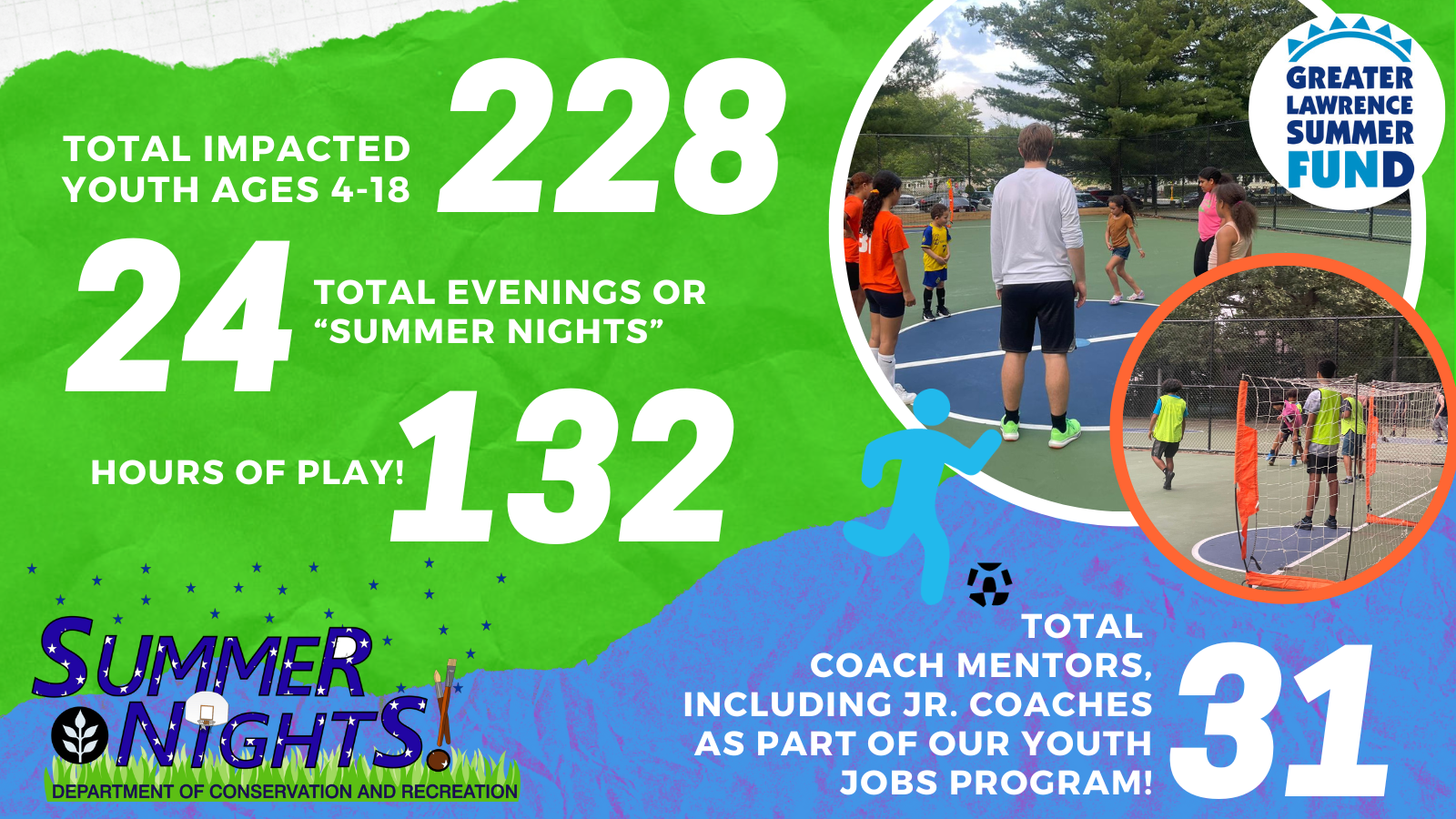 Summer Nights Futsal turned local courts into hubs of activity, joy, and opportunity. Between July 7 and August 14, 20 Lawrence teens and young adults delivered 152 hours of programming across 26 evenings, engaging over 200 Lawrence youth — proving that leadership and play go hand in hand.