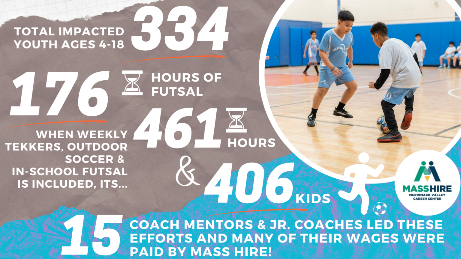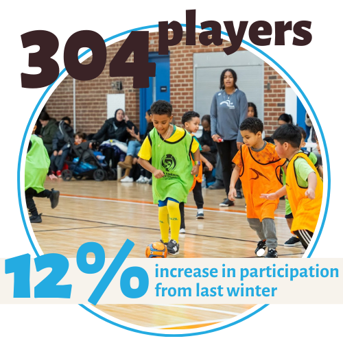 Our 10-week indoor futsal season welcomed 334 youth and teens, representing a 12% increase from the previous year. Thanks to Coach Mentors like former players Noe, Steven, and Isabella, participants not only honed their skills but also learned valuable lessons in leadership and teamwork.