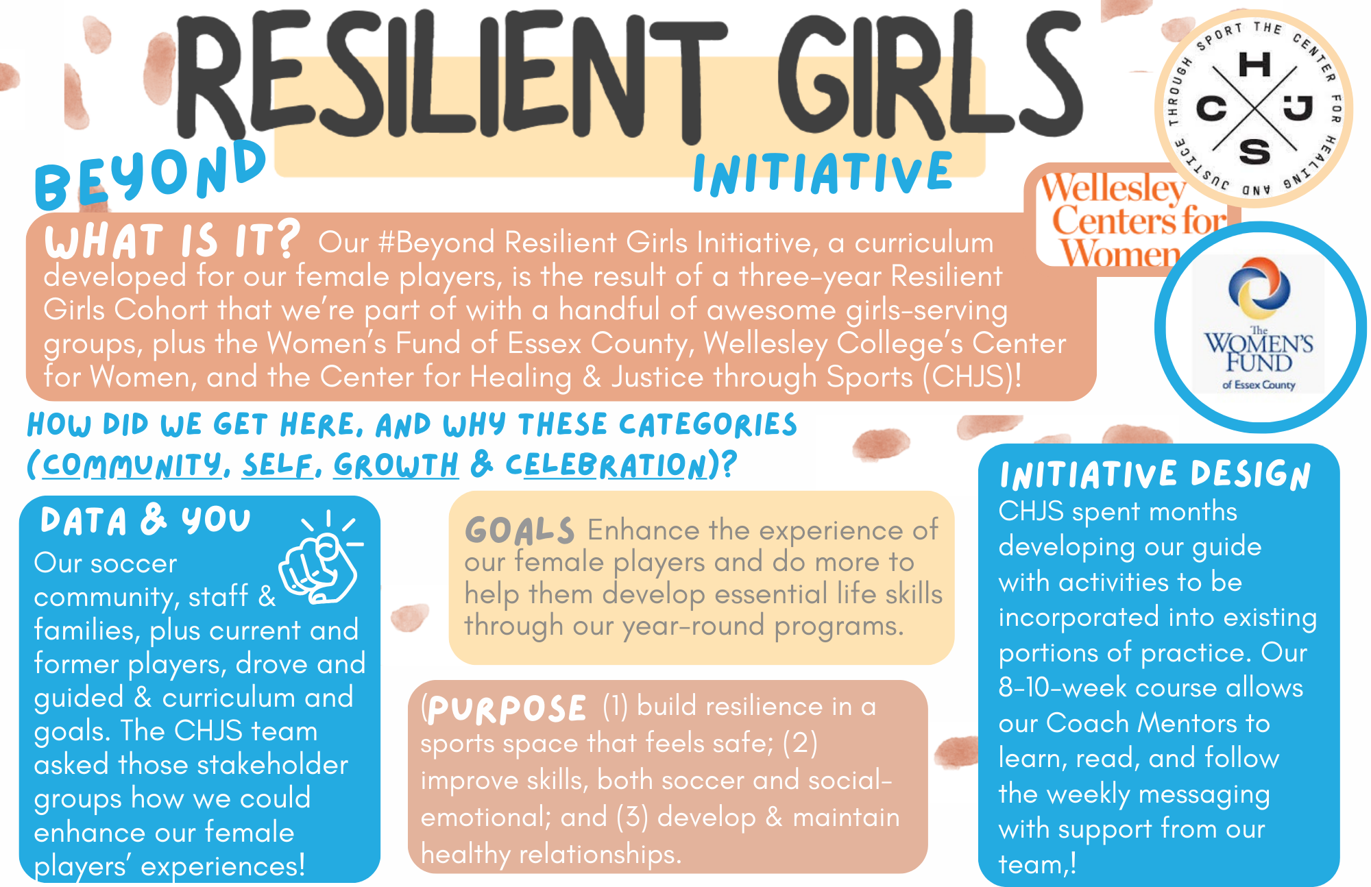 With guidance from CHJS, we developed its first resiliency-focused curriculum, designed for grades 6–12. This 8–10 week programming, called Beyond Resilient Girls, is embedded directly into practices and games.