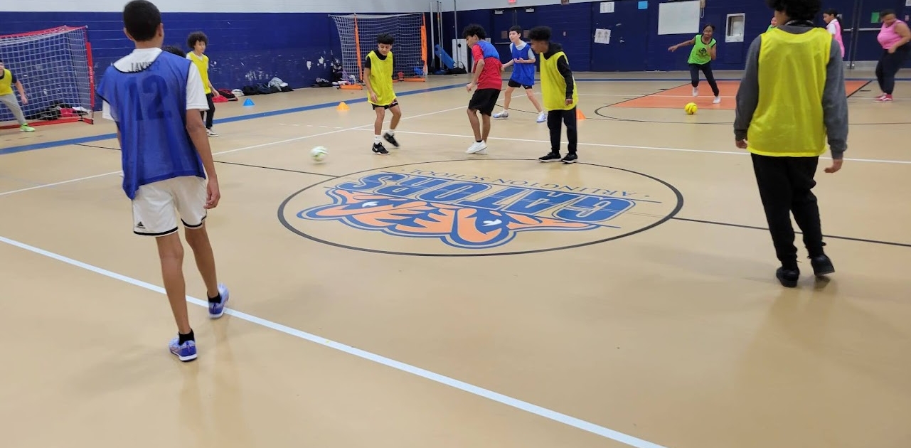 • Small group instruction to encourage participation (i.e. small-sided games of 6-8 students to maximize ball touches and interaction);