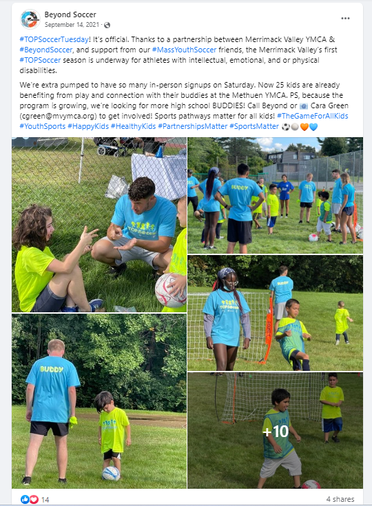 The YMCA and Beyond Soccer have partnered alongside Massachusetts Youth Soccer to bring this important program to Lawrence and Merrimack Valley communities and are committed to providing a supportive and motivating soccer experience for all children with mental or physical disabilities.
