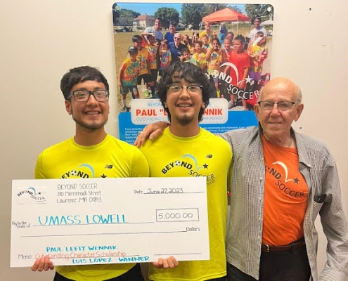 Thanks to generous supporters—and the Cummings Foundation’s $25,000 grant combined with a major gift from the JPC Foundation—Beyond Soccer reached its initial $100,000 goal to endow the Paul “Lefty” Wennik Outstanding Character Scholarship Fund.