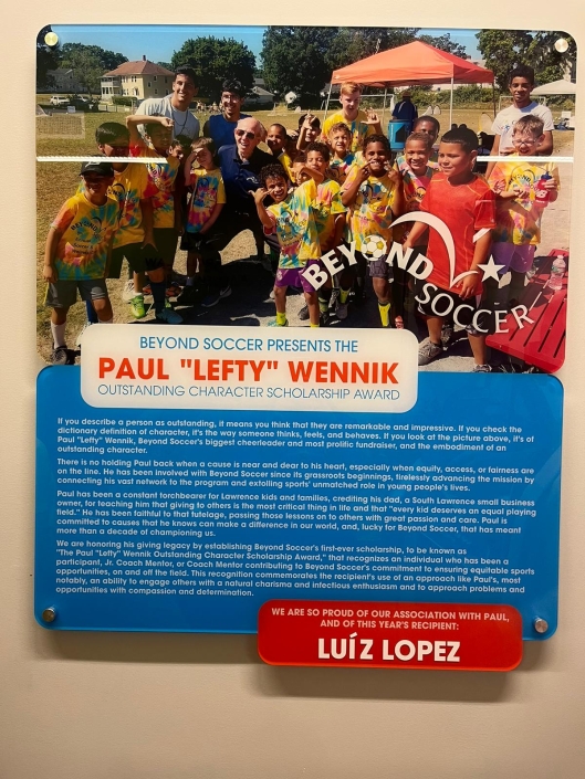 Beyond Soccer proudly announces its FIRST-EVER scholarship, the Paul “Lefty” Wennik Outstanding Character Award